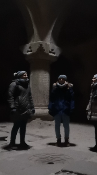 Meine Familie kam in der Nacht von Sonntag auf Montag in Jerewan an. Ich holte sie vom Flughafen ab und besuchte sie am nächsten Morgen in ihrem Hotel. Meine Schwestern wirkten noch etwas unausgeschlafen, aber nach ein bis zwei Tassen Kaffee besserte sich die Laune merklich. Wir besuchten an diesem Morgen ein kleines Museum und wanderten etwas durch die Stadt. Nachmittags waren wir zur Weihnachtsfeier der Schule eingeladen. Dort war eine lange Tafel aufgebaut, an der alle Mitarbeiter*innen der Schule saßen und feierten. Die Stimmung war ausgelassen. Es wurde getanzt, gegessen, Trinksprüche wurden ausgesprochen und Weihnachtsgeschenke verteilt. Meine Schwestern saßen wie erstarrt auf ihren Plätzen und beobachteten alles genau, während meine Oma sich mitten ins Getümmel stürzte. Nach ein-einhalb Stunden war es meiner Familie dann aber genug und wir fuhren mit dem Taxi zu meiner Gastfamilie. Auch dort wurden wir natürlich mit Essen und Tee empfangen, was meine Oma und Schwestern, die bereits auf der Feier einiges gegessen hatten, leise aufstöhnen ließ. Mein Magen war diese Menge an Essen glücklicherweise mittlerweile gewohnt, sodass ich problemlos erneut etwas essen konnte.