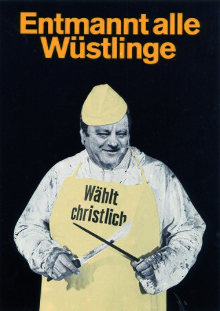 Für einen politischen Skandal sorgt 1974 der Künstler Klaus Staeck mit einer Plakatausstellung in London. Seine Darstellungen deutscher Politiker*innen kommen bei diesen gar nicht gut an – das Goethe-Institut wird vom damaligen Außenminister Hans-Dietrich Genscher offiziell gerügt, weil es die Ausstellung mitfinanzierte.