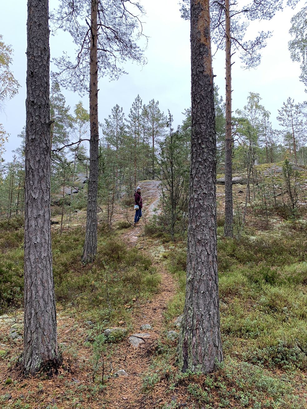 Heute habe ich den Nuukiso Nationalpark besucht. Dieser grenzt direkt an Espoo. Ich bin mit dem Auto hingefahren, er soll aber auch gut mit dem Bus zu erreichen sein. Als ich angekommen bin, hat es leider etwas genieselt. Im Park gibt es verschiedene Routen, sodass für jeden Geschmack etwas dabei ist. Manche sind nur kurz und eher für einen Spaziergang geeignet als zum Wandern, andere sind richtige Wanderrouten. Im Winter kann man dort auch Ski fahren und es gibt einen Weg der, laut der Informationen des Parks, sogar mit dem Kinderwagen oder mit dem Rollstuhl zu bewältigen ist.
