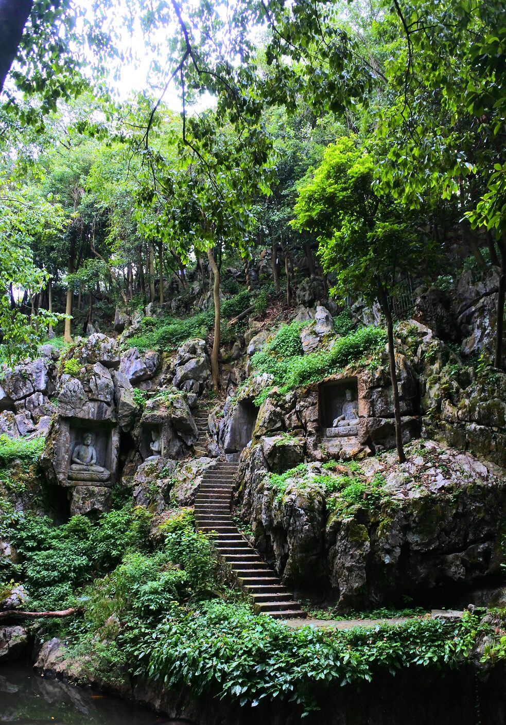 Der Ort des Klosters lässt sich von der Stadtmitte ideal mit dem Bus erreichen. Das Gebiet um die Anlage herum ist eine Art Naturschutzgebiet, weshalb auch hierfür eine Eintrittskarte gekauft werden muss. Nach den ersten Schritten fällt der Blick der Besuchenden bereits auf Buddhabildnisse, die vor Jahrhunderten in den blanken Fels des Feilai Feng gehauen wurden. Die Nischen lassen sich von dem verschlungenen Wege- und Treppensystem, das der felsigen Oberfläche des Berges abgerungen wurde, ideal bewundern.