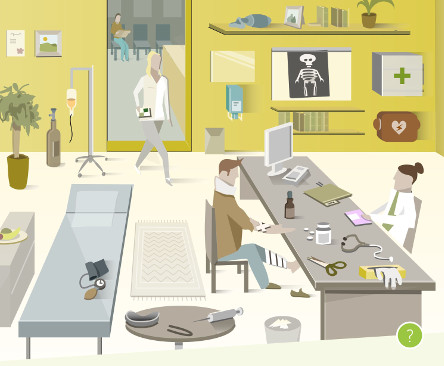 Welche Gegenstände sind am Arbeitsplatz in einer Arztpraxis wichtig? Wählen Sie die Begriffe aus.