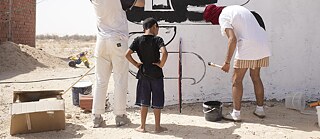Im Rahmen des Projektes „Houmtek“ verschönern Anwohner*innen den öffentlichen Raum in Tunesien. Foto: Dora Dalila Cheffi/Goethe-Institut Im Rahmen des Projektes „Houmtek“ verschönern Anwohner*innen den öffentlichen Raum in Tunesien. So es die politische Lage vor Ort noch erlaubt, versuchen lokale Goethe-Institute auch in Zeiten des Umsturzes Kulturschaffende zu unterstützen. So begleiteten die Goethe-Institute im Nahen Osten und Nordafrika den Arabischen Frühling und stärken seitdem die zivilgesellschaftlichen Akteur*innen durch Kultur- und Bildungsprojekte. In Tunesien eröffnete beispielsweise das Austauschprogramm „Théâtre Demain“ jungen Bühnenbildner*innen und -techniker*innen 2013 neue Perspektiven auf dem Arbeitsmarkt. Auch der Kurzfilmwettbewerb „Khatawat“ trug seit der Einführung 2013 zur Weiterbildung von mehr als 200 jungen Menschen bei, für einige Filmemacher*innen war er der Startschuss ihrer Karriere.