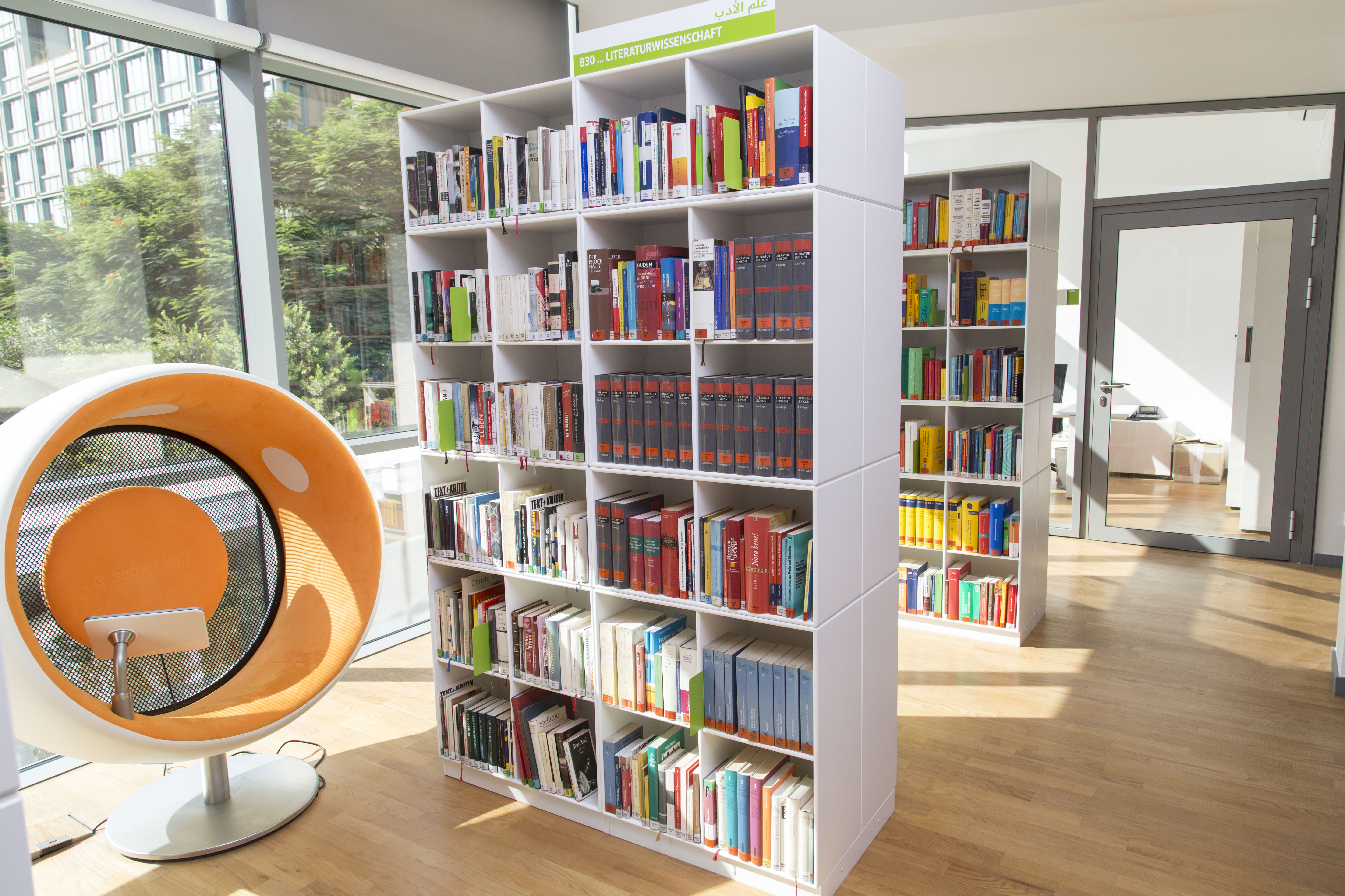 Mit dem Sonic Chair können Besucher*innen der Bibliothek im Goethe-Institut Kairo bequem und ohne Kopfhörer multimediale Inhalte ansehen und anhören – ohne andere Besucher*innen zu stören:
