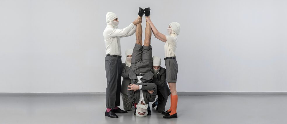 Festival Studio Bosporus: Installation & Performance von Isaac Chong Wai: Leaderless (2021), Eine künstlerisch-politische Kampagne mit dem Ziel, die Darstellung von Macht zu dezentralisieren und sich gegen die Gewalt des Totalitarismus zu wehren: Gesichter, die Macht darstellen, werden verwischt, Reden von Anführern werden gemeinschaftlich gesprochen und die Nation, mit der man sich identifiziert, gerät in Vergessenheit. | Foto: Kahyan Kaygusuz