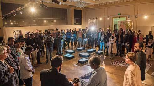 Das geschah zunächst in einem fünftägigen Workshop im Juni, in dem sich die Gruppe den historischen Dokumenten widmete, wissenschaftliche Vorträge hörte und über die Region Shoa, über die Geschichtsschreibung und über den Umgang mit Kartenmaterial diskutierte. Im Oktober reisten die Kuratoren dann mit den fünf Künstlerinnen und den drei Wissenschaftlern – allesamt jünger als 30 Jahre – in die Region Shoa. Die Reise brachte sie vom Menangesha Wald nach Holeta, Addis Alem, Entoto und schließlich für fünf Tage in die historische Stadt Ankober. Für die eigenen Kreationen gab es keine konkreten Vorgaben, vielmehr waren die Kuratoren neugierig darauf, was aus dem Rohmaterial entstehen würde. „Wir übernehmen die kuratorische Arbeit, aber alles andere liegt in den Händen der Teilnehmenden. Es ist wie bei klassischer Musik: Der Dirigent achtet darauf, dass alle zusammenspielen, aber es ist das Orchester, das die Musik macht“, erklärt Fontaine.