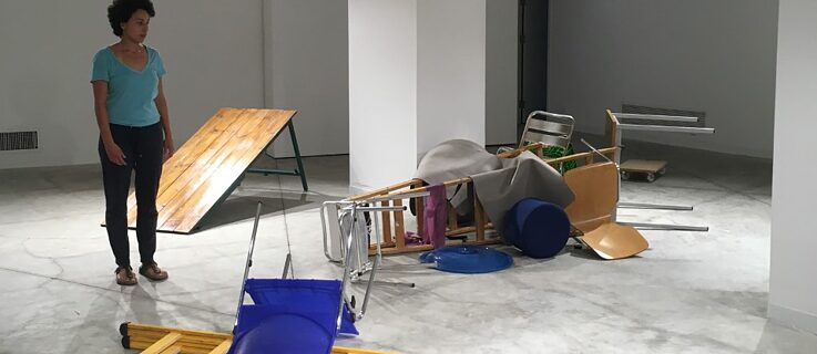 WHAT DOES THE SPACE KNOW is an interactive dance performance / installation choreographed and performed by Farah Saleh (PAL / UK) and Mirjam Sögner (DE/ AT).