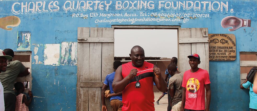 Scene in front of the Charles Quartey Boxing Foundation from the film “Lionhearted”