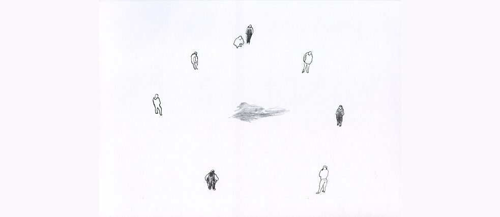 Siniša Ilić, “Social Distancing 5”, ink on paper | Illustration (detail): © Siniša Ilić 2020