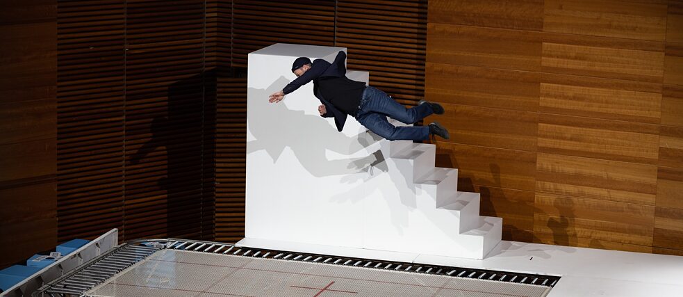 The French circus performer and choreographer Yoann Bourgeois at the opening of the Kultursymposium Weimar with a physical story about failure, hope and rediscovery of trust (in oneself).