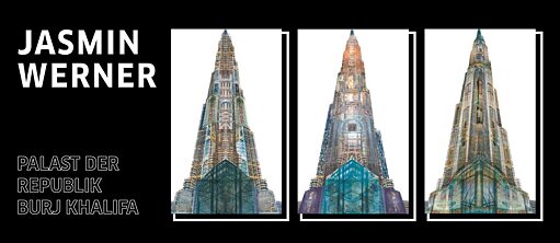 تستكشف الفنانة جاسمين فيرنر بعملها الفني “قصر الجمهورية الألماني في برج خليفة” الروابط المعمارية بين برلين ودبي. فقد جلبت عوارض من الصلب مأخوذة من قصر الجمهورية المهدم لتوظفها في برج خليفة. تضم الفنانة البنايتين في علاقة مباشرة، وتجمع كلا الشكلين في منحوتة من السقالات. نُفذت تلك المنحوتة من مواد معاد استخدامها، مثل شبكة البناء والقماش من دولة الإمارات العربية المتحدة. وسيجري دمج المواد مع الصور المطبوعة على شبكة البناء التي تشير إلى الرحلة التي قطعها الصلب المعاد تدويره من روسلاو ديساو عبر تركيا إلى الإمارات العربية المتحدة.