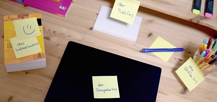 Basisvokabular, erste Sätze bilden, erste Grammatiklektionen (z.B. der Genitiv)