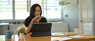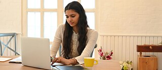 Eine Frau lernt in einer gemütlichen Umgebung zu Hause an ihrem Laptop © Getty Images
