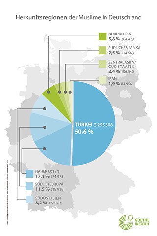 Die Deutsche Islam Konferenz gibt die Zahl der muslimischen Gebetsstätten mit 2.600 an, darunter etwa 150 „klassische“ Moscheen, also Bauten mit einer Kuppel und meist auch einem Minarett. Mit 900 Moscheegemeinden ist die Türkisch-Islamische Union der Anstalt für Religion (Ditib) der größte Moscheeverband in Deutschland. Er ist der Religionsbehörde in Ankara unterstellt und predigt einen religiös konservativen Islam. Denn die ersten Muslime, die ab den 1960er-Jahren in größerer Zahl nach Deutschland kamen, waren sogenannte Gastarbeiter aus der Türkei. Viele stammten aus den ländlichen Regionen Anatoliens, wo die Bevölkerung einem traditionellen, meist sunnitischen Islam angehört. Sie und ihre Kinder und Enkel machen immer noch gut die Hälfte aller Muslime in Deutschland aus. In den 1980er-Jahren kamen Bürgerkriegsflüchtlinge aus dem arabischen Raum hinzu, in den 1990er-Jahren viele Bosnier. Mehr als die Hälfte der etwa 900.000 Menschen, die 2015 in Deutschland Schutz vor Krieg und Verfolgung suchten, stammte aus Syrien, Afghanistan, Irak, Iran und Eritrea.Die Religion war für viele der ersten Einwanderergeneration Heimatersatz und hatte eine wichtige soziale Funktion: Man traf sich, tauschte sich aus über die alltäglichen Schwierigkeiten, organisierte Hochzeiten und Nachbarschaftshilfe. Da es billig sein musste, versammelten sich die Gläubigen in Hinterhöfen, in aufgelassenen Fabriketagen, leer stehenden Supermärkten und Kellern. Vor etwa 20 Jahren begannen die ersten Gemeinden, repräsentative Moscheen zu errichten und mit ihrem Glauben selbstbewusst in die Öffentlichkeit zu treten. Denn die Religiosität hat in der Generation der Kinder und Enkel der Einwanderer zugenommen, wie die Studie Religionsmonitor 2017 der Bertelsmann Stiftung ergab.