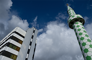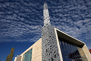 Mehr Fingerspitzengefühl wurde bei einem Bauprojekt im oberbayerischen Penzberg bewiesen. In der Kleinstadt in der Nähe des Starnberger Sees ließ die multiethnisch geprägte Gemeinde einen Bau errichten, der sich mit seiner schlichten Ästhetik der Moderne verpflichtet sieht. Ein nur 15 Meter hohes Minarett aus Edelstahl lässt den Bau als Moschee erkennen. Das Eingangsportal, auf dem Koranverse auf Deutsch und Arabisch eingraviert sind, folgt direkt auf Elemente der Euro-Islam Islam-Architektur.