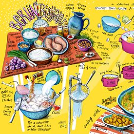 Team Germany invites you to a culinary journey in the capital: Food blogger Felicitas Then invites illustrator Alexandra Klobouk to her home district Neukölln to the weekly market and then to her home where they cook together. It is an Indian-spiced rice dish with local dried fruits and good old German butter: Berlin Biryani.