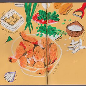In New Delhi, Sundeep Bhatia and Bedabrata Chakraborty, better known as the food bloggers DelhiFunDos, meet with llustrator Kruttika Susarla to exchange culinary and artistic experiences. They cook - typical for Indian cuisine - once veg and once non-veg: Shukto and Methi Chicken.