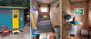 Es geht derweil auch noch kleiner: Ganze zwei Quadratmeter misst die Unterkunft auf Rädern, die von Wolfgang Goergens konzipiert wurde – einem Unternehmer, der sich erst einen Namen mit Luxushotels für Hunde machte, um sich dann in Berlin dem Bau seiner Less Homes zu widmen. Gaskartuschenkocher, Kühlschrank mit Langzeitakkus, kleiner Fernseher, Kaffeekocher, Handwaschmaschine, Sitzdusche, Trockentoilette, Schränke. Sogar ein Briefkasten und ein Fach für Spenden aus der Nachbarschaft sind an der Außenwand angebracht. Wie ein Handwagen kann das Konstrukt bewegt und verstellt werden. Kostenpunkt sind circa 2.000 Euro, die über Werbungen auf den Außenflächen der Minimalherberge refinanziert werden sollen.