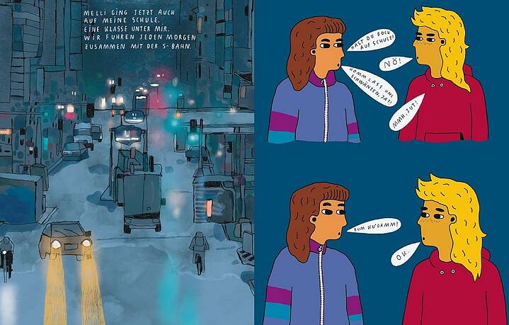 Sandra Rummler's comic debut Seid befreit (Be liberated) also begins in East Germany, in East Berlin to be precise. Like the author, the main character Mo was born there in 1976. Based on her own experiences, Rummler describes Mo's childhood in the GDR and how she experienced the fall of the Berlin Wall and the time that followed. When Mo moves to West Berlin after the fall of the Wall, she is exhausted by the colourful world of goods in the evenings. She is "glad to return to the dark and empty part of Berlin". For the adolescent, the time after reunification is associated with the promise of an almost anarchic freedom, but the dark side soon becomes apparent. Mo's parents lose their jobs, her mother is forced to work as a cashier in a supermarket and Mo is threatened by neo-Nazis and called a stupid „Ossi“ (pejorative for East Germans) at school. "Today I live in another country without ever having moved," they say. The reunion with a friend who was thought to be lost is ultimately a small happy ending.