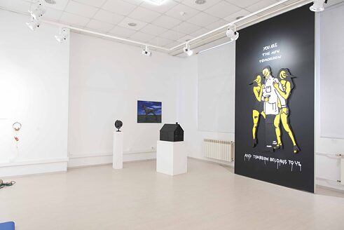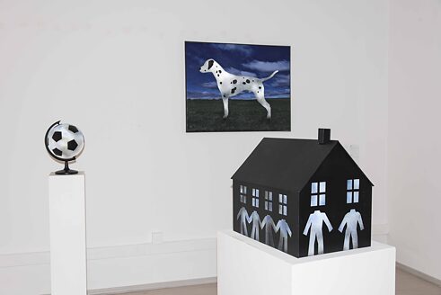 Ob sie uns, euch oder einer anderen Generation oder Klasse gehört, die Zukunft ist vor allem unklar und ungewiss, sie ist eine Finsternis, in die wir nur hineinschauen, über die wir Prognosen machen und unsere Wünsche und Hoffnungen hineinprojizieren. Die Arbeiten von Joro Peev sind analoge Objekte, die über das Digitale aktiviert werden. Sobald sie mit einem Blitz fotografiert werden, ändern sie sich „automatisch“ - der schwarze Hund wird zum Dalmatiner, der Globus zum Fußball, und das dunkle Haus ist plötzlich von Menschen bewohnt. Damit macht Peev einen ironischen Kommentar zur digitalen Kultur, in der das Smartphone bzw. sein Bildschirm zur Verlängerung unseres Auges geworden ist. Sehen wir die Dinge auf dieselbe Weise „live“ wie auf dem Bildschirm des Smartphones? Und welches Auge sieht die Dinge "so wie sie sind" - unseres oder das der Kamera?