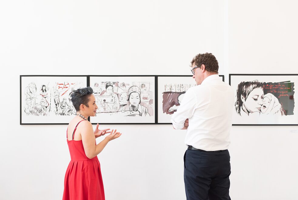 Die Nachbildung erfolgt hier in Form von Zeichnungen ausgewählter Szenen, Bilder und Zitate aus den analysierten Filmen. Im intimen Akt des Zeichnens analysiert Rossa nicht nur die Filme, sondern führt auch eine Art Interview mit sich selbst – so wie sie auch mit den elf Frauen im Filmmaterial arbeitet. Aus den Korrespondenzen und Diskrepanzen zwischen ihrem eigenen/gewünschten Bild und dem der Filme ergibt sich die vorliegende Ausstellung.