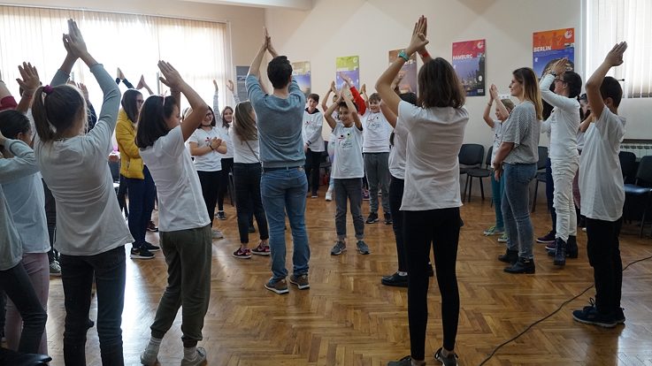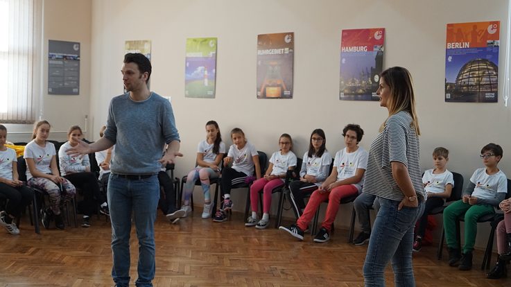 Im November 2018 hatten rund 50 Schülerinnen und Schüler der 19. Gesamtschule „Elin Pelin“ in Sofia die Möglichkeit, sich kreativ mit der deutschen Sprache zu beschäftigen. In einem eintägigen Workshop entwickelten die Deutschlernenden zu den Fragen „Wie stellst du dir deine Stadt der Zukunft vor? Was wünschst du dir?“ kurze Szenen, die sie sich gegenseitig vorstellten. Auch Musik und Tanz durfte nicht fehlen, um Begeisterung für die deutsche Sprache zu wecken.