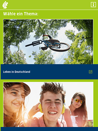 No aplicativo Deutschland.Kennen.Lernen você assiste a filmes interessantes, lê textos fascinantes e ouve textos informativos com ilustrações coloridas. Assim você melhora o seu alemão de forma fácil e com ótimos exercícios.
