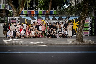 A intervenção do artista Artur Soares, de Salvador, trouxe um trabalho potente e gráfico para a fachada do Instituto. A partir do seu estudo em gravura que versava sobre a face humana, o artista levou para o muro do Instituto figuras que representam a história da resistência política de protagonistas negras da história do Brasil: Luísa Mahin, Erica Malunguinho e Marielle Franco. Soares realizou as gravuras em linóleo. Estas, por sua, vez, foram digitalizadas, impressas em grande formato e coladas como lambes na fachada.