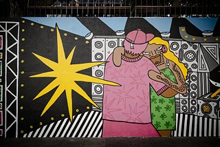 O mural da artista Camila Moritugui teve como ponto de partida os 250 anos de Ludwig van Beethoven e apresentou um projeto gráfico contemporâneo sobre o tema. Para o trabalho, Moritugui teve como referências partituras musicais de Beethoven, cores primárias e formas geométricas básicas que remetem à história do design e também dialogaram com o legado iniciado pela escola Bauhaus. O projeto foi feito inteiramente com spray e foi acompanhado também por uma iniciativa musical, como convite ao violonista Eduardo Guterres para tocar um arranjo do compositor alemão enquanto a artista produzia o trabalho gráfico.