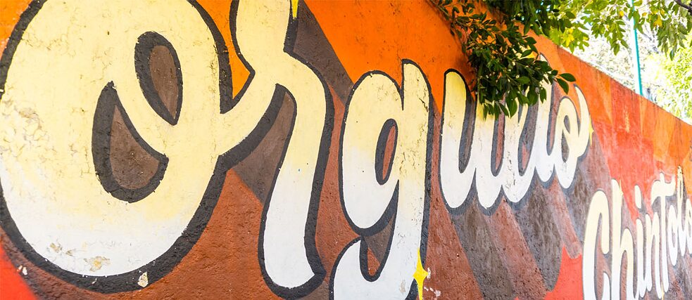 Aber für die Künstlerin Alina Kiliwa war ein Schild nicht groß genug, um ihre Ideen festzuhalten. Sie ging auf die Straße, um Wände zu intervenieren. Eine davon befindet sich im Stadtbezirk Azcapotzalco und auf ihr bringt sie das Lebensgefühl und die emblematische Bezeichnung der Bewohner dieser Gegend zum Ausdruck. Auf der Malerei liest man „Orgullo Chintololo“ (Stolz des Chintololo), in gelber und weißer Farbe auf einem roten und orangenen Hintergrund.