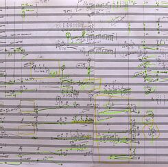 Skizzenblatt zu „Bellygoat Boom“, Komposition für Orchester.