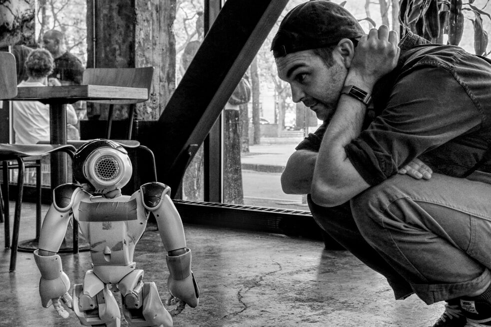 NAO zu Besuch in Montreal! 2023 hatte das Goethe-Institut, zusammen mit seinen lokalen Partnern Milieux, Hexagram und Eastern Bloc im Rahmen des Robot-in-Residence-Projekts junge Wissenschaftler*innen und Künstler*innen zu kreativen Projektvorschlägen mit dem humanoiden NAO-Roboter aufgerufen.