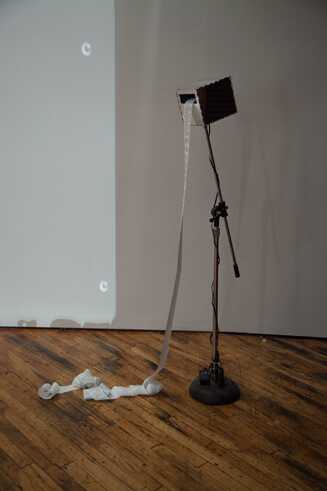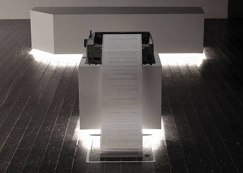 Auf ähnliche Weise verwendet die Installation This Is Major Tom To Ground Control (2012) der aus Quebec stammenden und derzeit in Frankreich lebenden Künstlerin Véronique Béland einen automatischen Generator für Zufallstexte. Der Generator wird aktiviert durch den Empfang und die Analyse von Funkwellen, die von den Radioteleskopen des Pariser Observatoriums ausgesendet werden. Der daraus resultierende Text, der Unterschiede in der Kohärenz aufweist, wird in Echtzeit von einer synthetischen Stimme verlesen. Diese fortlaufend erfasste „Nachricht aus dem Universum“ wird auch ständig gedruckt und täglich als Buch gebunden. „um auf diese Weise ein unendliches Archiv von Botschaften aus dem Weltall zu erstellen“. Die Frage, die sich hier stellt, ist nicht unbedingt, wer das Werk erschaffen hat, sondern was das Werk erschaffen hat. Bei der Schaffung eines Werks ist das Material niemals neutral – es informiert die/den Künstler/in über sein Potenzial, die Richtung, in die es gehen kann, sowie die Prägung, die es zulässt. Wenn sich Algorithmen und Daten mit unserer Erlaubnis unserer Kontrolle entziehen können, so entziehen sie sich dennoch nicht dieser Anforderung des Materials im Schaffensprozess. Wird das Material dadurch nicht ein Mitschaffender am Werk?