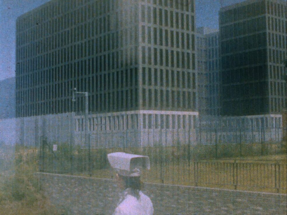 Dokumentation, Beobachtung, Überwachung. Überwachung von öffentlichen Räumen, Gebäuden, Menschen. Beatrice Moumdjian besucht leere Stadträume, wo Kameras in die Leere blicken, die hinter den eingeschlossenen Menschen zurückbleibt. Was schauen sie an, wenn alle zu Hause sind? (Peter Haueis)