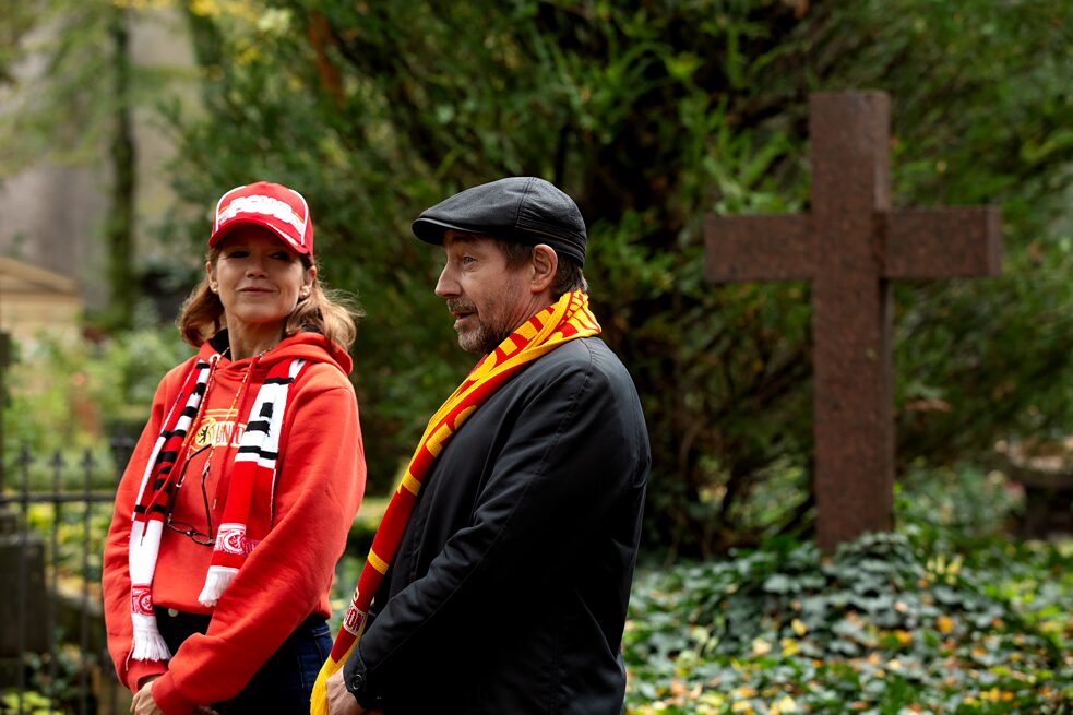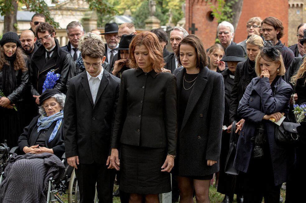 For Anke Engelke, who depicts all the inner conflict and vulnerability of a woman in her mid-fifties who has been knocked completely for six, Karla is the perfect role. It gives the entertainer another opportunity to portray a character who has little in common with her comedy persona: Karla teeters clumsily through the wreckage of her previous existence, stepping at times on other people’s feet, yet ultimately succeeding in patching her family back together, however haphazardly. It is not only Karla and her clan that have to sweep up the detritus of the former lives, however. Each episode focuses on a different death at Borowski’s funeral parlor, and on people who are all trying to find their own ways to cope with their loss. Paolo Conte’s earworm “Sparring Partner” has a gently placatory effect, floating above all the chaos.