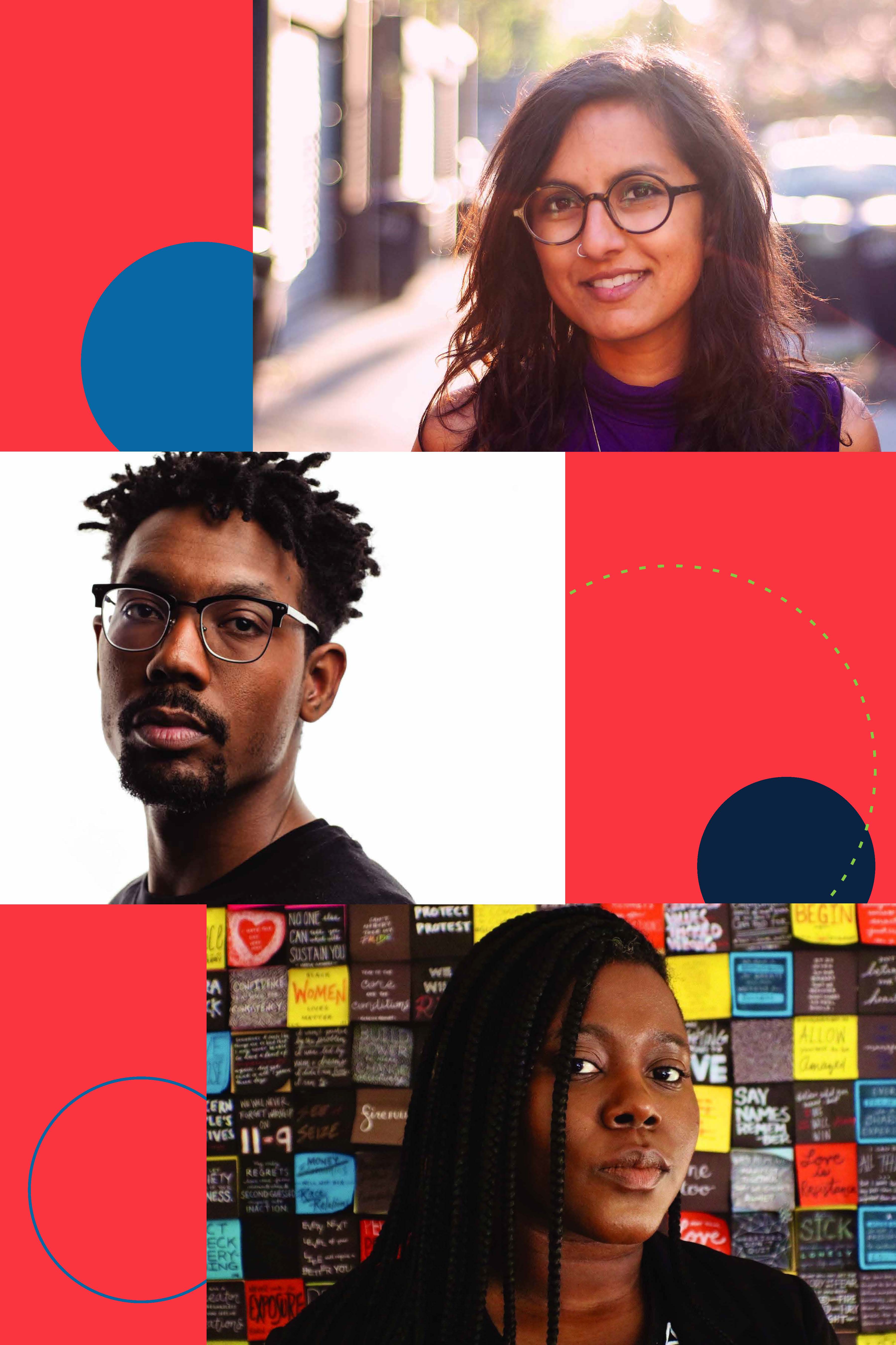 LEFT: Mallory Nezam, Damon Davis, and De Nichols. “Mirror Casket” in protest, 2014.
