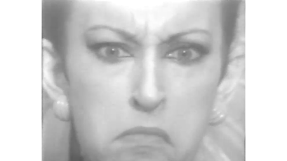 The work Mimikry by Rosalia Müller is part of the video series Video - Ich sehe mich (engl.: Video – I see Me) from 1977 with several short works by individuals, alone in front of the camera, that each emphasizes the performative potential of the medium for self-presentation. The series was produced and conceived by the German artist Michael Geißler, who founded the collective "VAM" (Video-Audio-Media) in 1969. VAM developed an independent, documentary video style that was both playful and imaginative. VAM were the first video project whose productions were broadcast on German television and took part in Documenta 6 in 1977. In Mimikry, the artist Rosalia Müller demonstrates in a humorous way how one can work on one's own image and expression with the help of a camera. Müller's work is an approximately 7-minute excerpt from the original video series, which is 1:02:30 minutes long.
