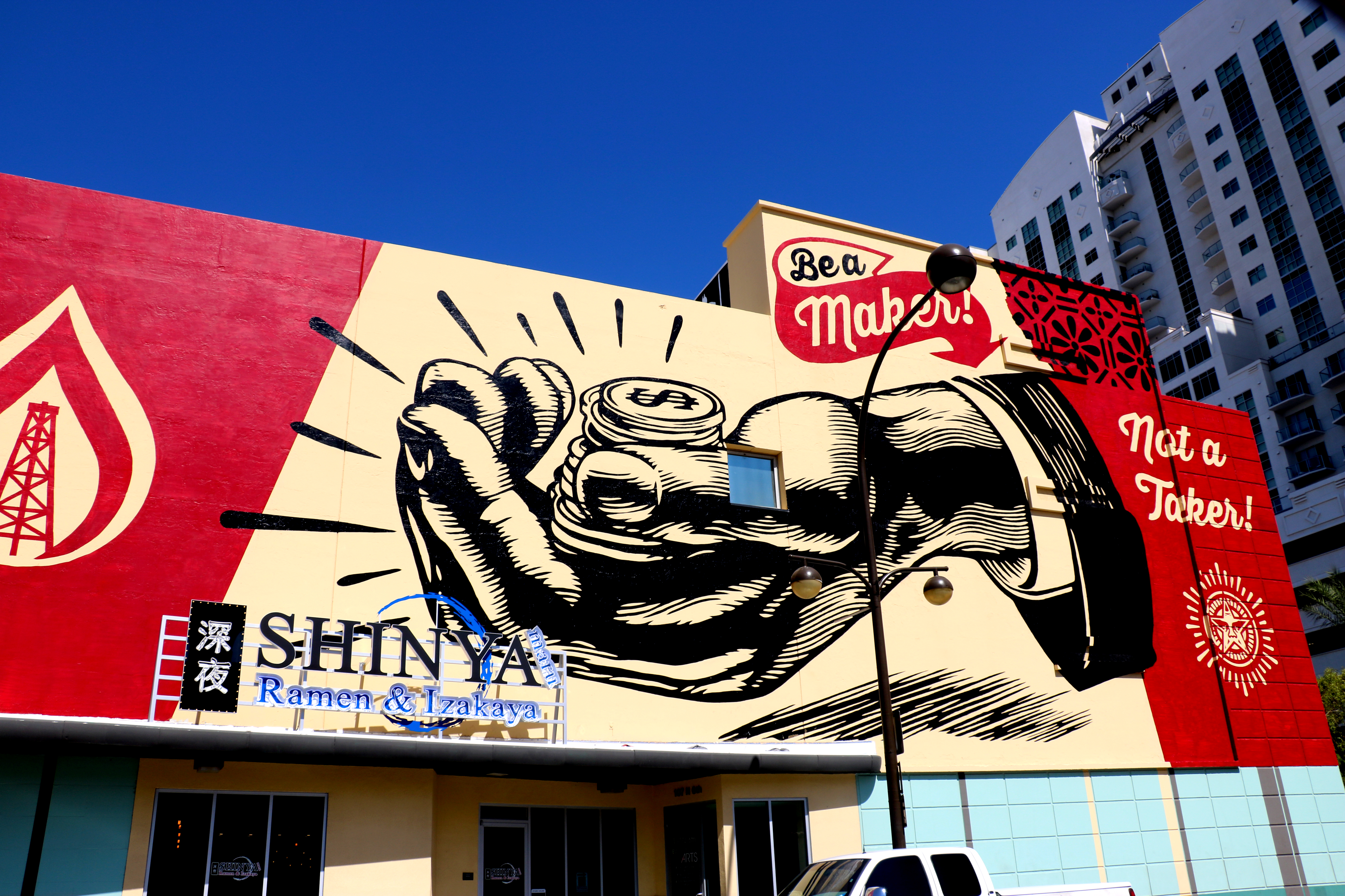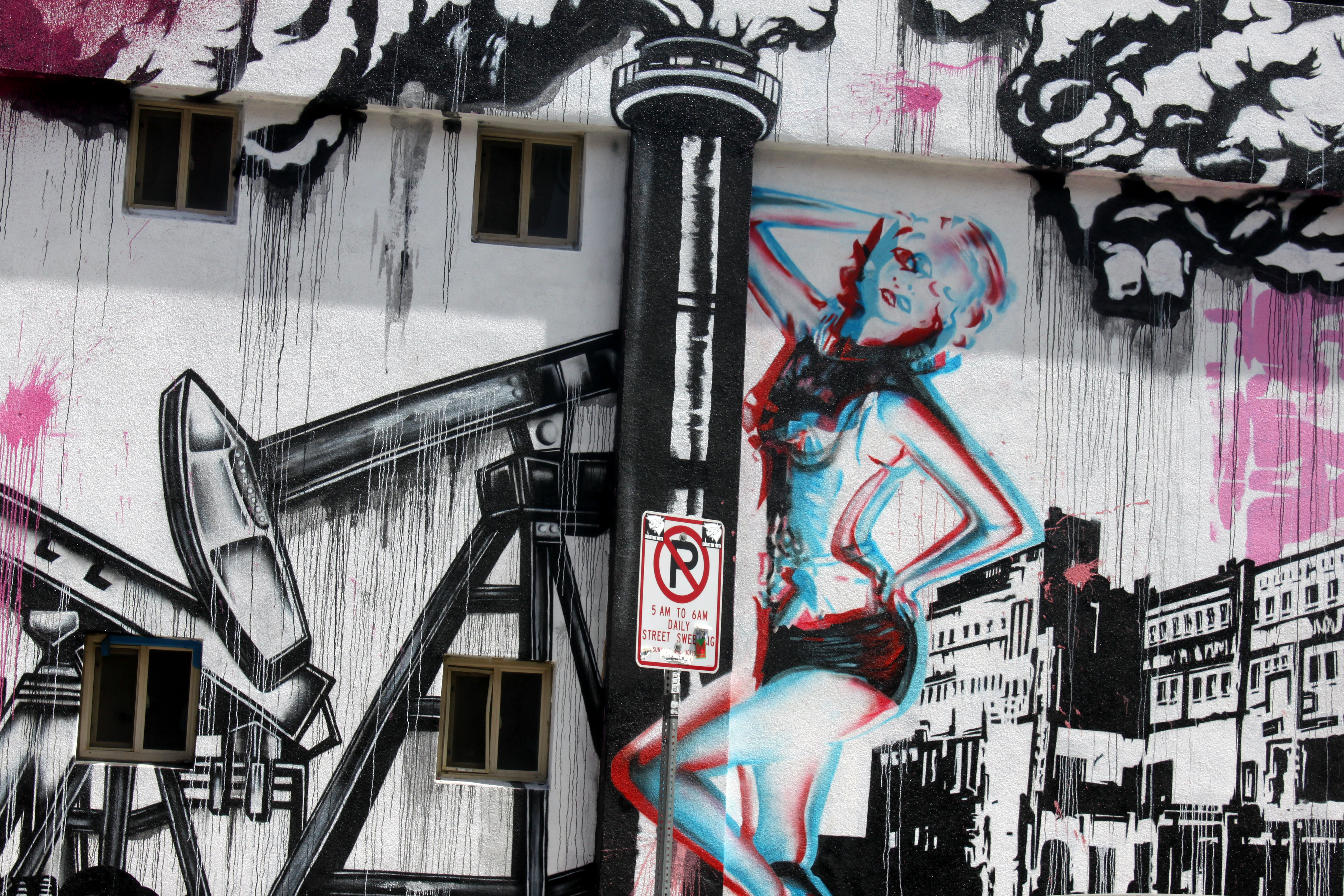As in most cities, graffiti is illegal in Las Vegas. After the Las Vegas Arts District was founded in 1998, an artist group around the artist Iceberg Slick (@icebergslick on Instagram) contacted owners of buildings with the request that the outside surfaces of their buildings be made available to street artists to put up their murals and write graffiti. These requests received a positive response and the resulted in the Graffiti Alley as a refuge for Las Vegas street artists. Initially, there was plenty of friction with the Las Vegas Metro Police Department, which has a graffiti task force to fight gang crime. However, these were settled through discussions between artists, the city and the police. While the original Graffiti Alley still exists, street art can now be found everywhere in the 18b Arts District. Business owners today proudly display artwork created by Las Vegas artists on the exterior walls of their shops, which they commissioned and paid for.Fremont East