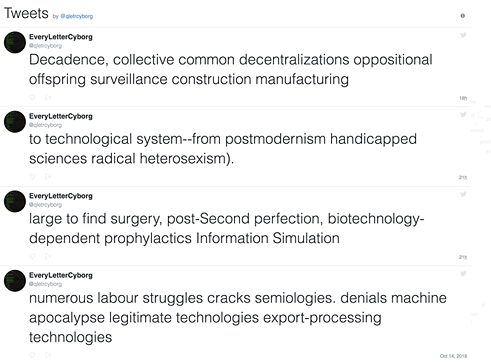 Xuan Ye, EveryLetterCyborg V1.2, 2018. Screenshot, Twitter results.