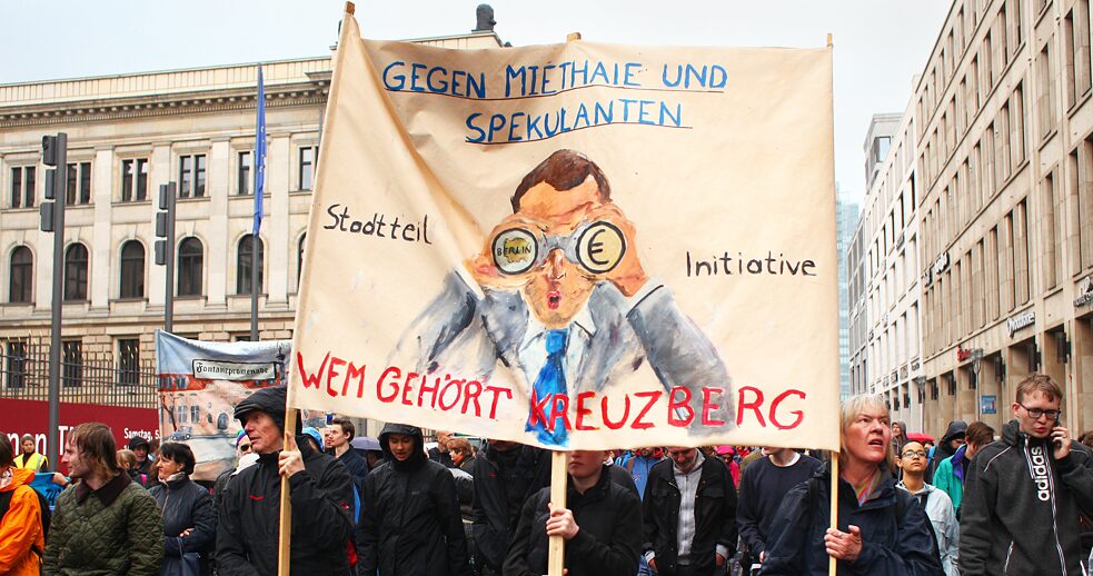 L’initiative « Deutsche Wohnen und Co. enteignen » par exemple, appelle à la socialisation d’environ 240 000 appartements de groupes immobiliers, si besoin par le biais de l’expropriation. À cette fin, elle a envoyé au Sénat une pétition qui a déjà récolté 77 000 signatures en vue d’obtenir un référendum. De nombreuses autres initiatives telles que « Bizim Kiez » (« Notre quartier »), « Kotti & Co » ou « Ora Nostra » s’activent lorsque des locataires sont contraints de quitter leur appartement ou lorsque des logements doivent être vendus à des investisseurs potentiellement désireux d’y faire des rénovations de luxe. Toutes ces initiatives sont en contact étroit, y compris avec la politique locale, et elles parviennent souvent à exercer une pression suffisante pour empêcher les ventes et les expulsions.