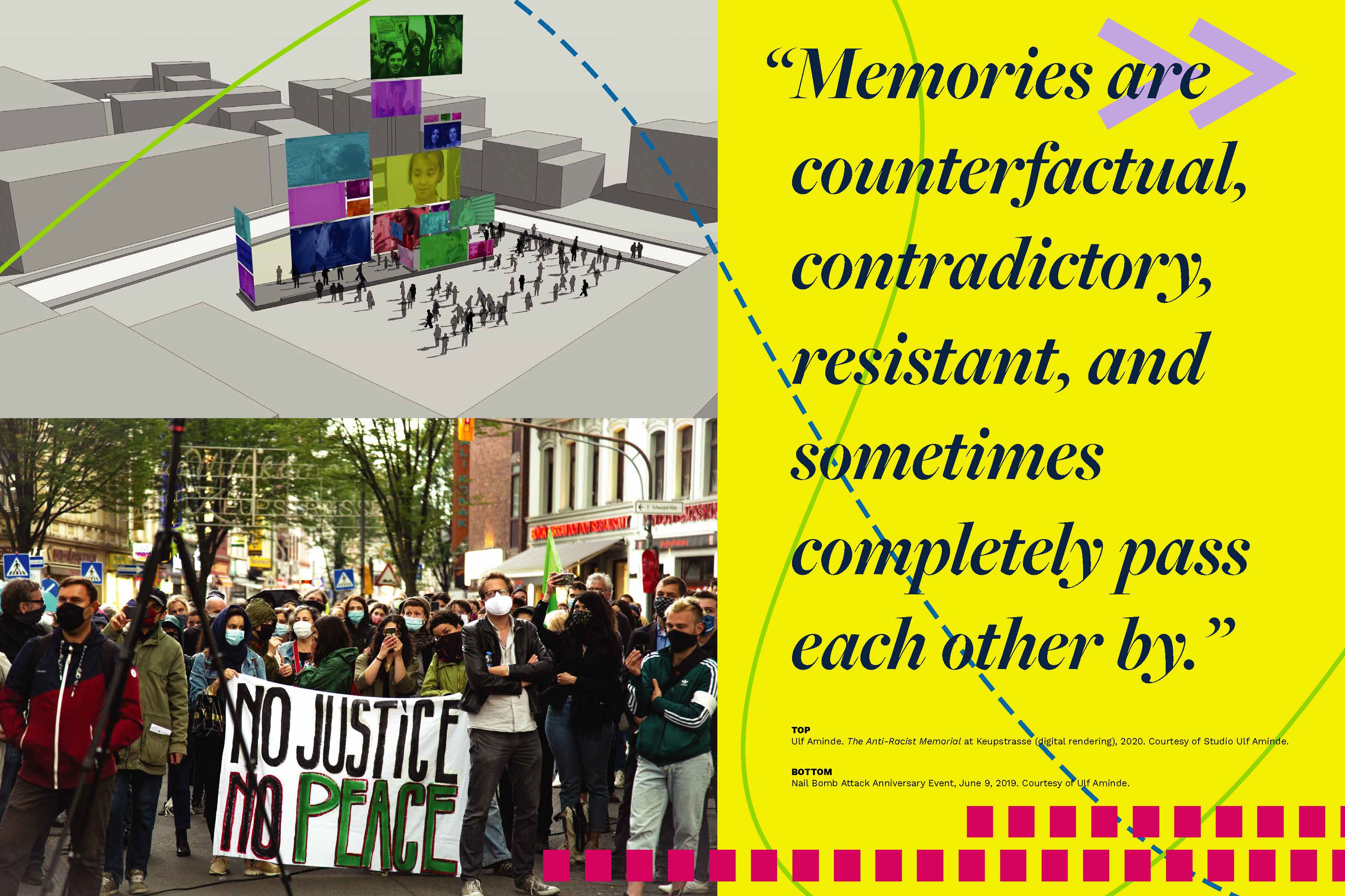 EN HAUT : Anti-Racist Memorial for Migration de la Keupstrasse (rendu digital), 2020;