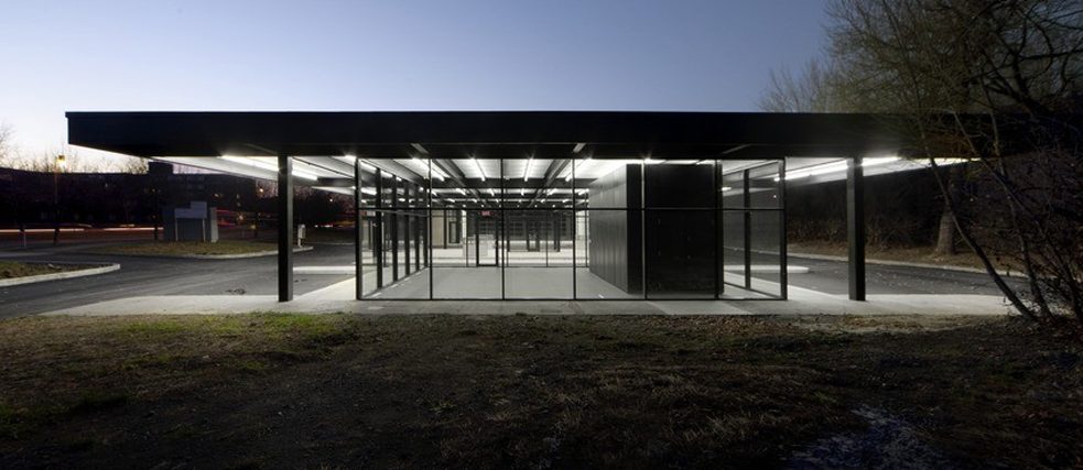 La station-service a été conçue par Ludwig Mies van der Rohe, l’ancien directeur du Bauhaus, et construit en 1969 en collaboration avec l’architecte local Paul H. Lapointe. Le bâtiment se caractérise essentiellement par ses façades vitrées typiques.