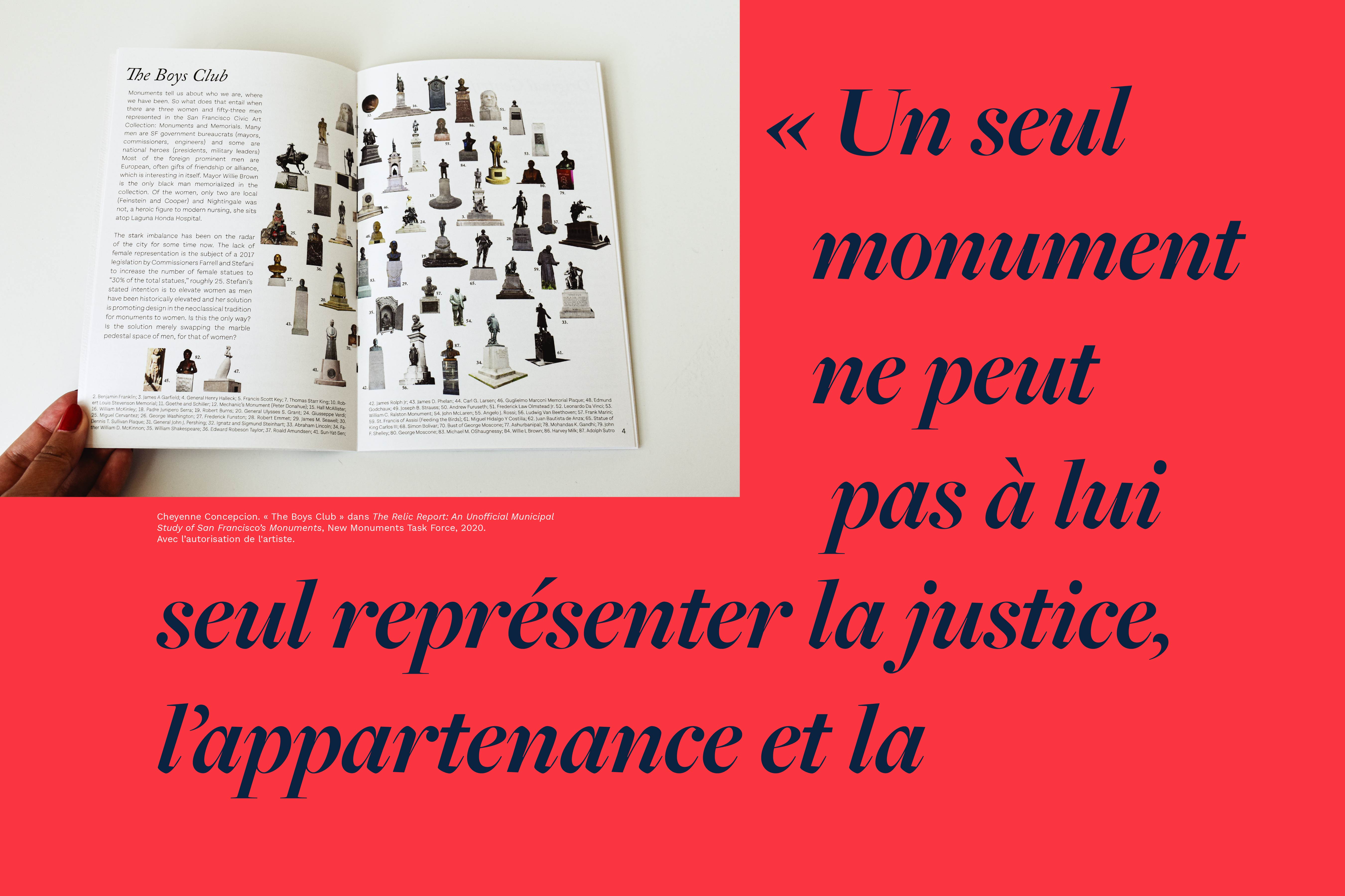 « The Boys Club » dans The Relic Report: An Unofficial Municipal Study of San Francisco’s Monuments, New Monuments Task Force, 2020.