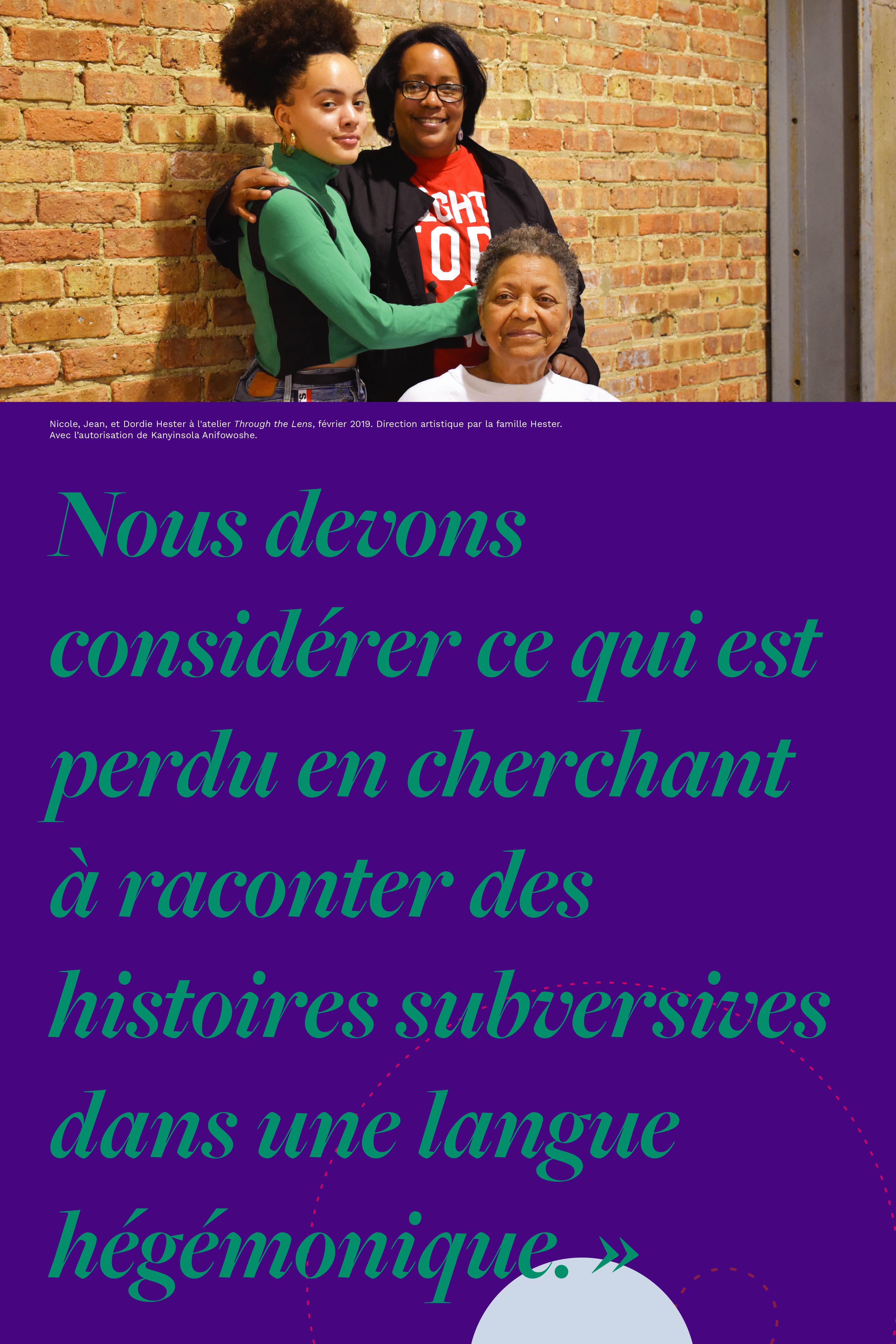 Nicole, Jean, et Dordie Hester à l'atelier Through the Lens, février 2019. Direction artistique par la famille Hester.