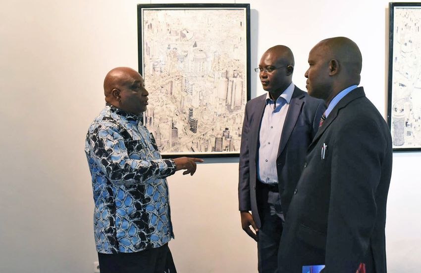 Exposition Demain, Kinshasa Photo: Goethe-Institut Kinshasa L’exposition assemble diverses visions du futur de la ville – dans la peinture, sculpture et la vidéo. Exposition « Demain, Kinshasa » Bienvenu Nanga | Photo: Goethe-Institut Kinshasa