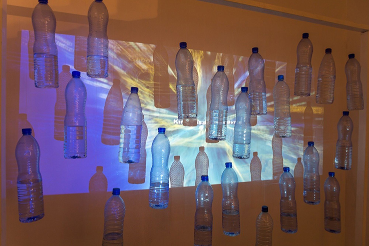 Installation de bouteilles, vidéo animée et 15 photographies digitales (2017)