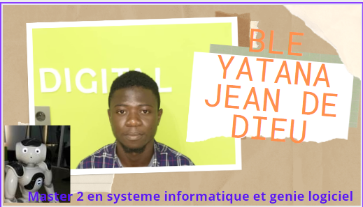 Je suis Ble Yatana jean de dieu, étudiant en Master Systèmes informatiques et génie logiciel (SIGL) à l'ESATIC d'Abidjan. Je suis spécialisé dans le domaine de l'intelligence artificielle et de tout ce qui relève de la quatrième révolution industrielle, à savoir la robotique.