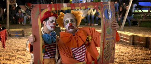 Es ist ein Spielfilm, in dem zwei Protagonisten vor ihrer Erschießung auf einer Brücke fliehen können und von einem Zirkus gerettet werden. Um dort bleiben zu können, erfinden sie eine originelle komische Nummer mit dem Messerwerfer und so wird der Zirkus für sie zu einem glücklichen Zufluchtsort, der jedoch weniger beständig ist, als sie glauben. Ich hatte ein sehr kleines Budget. Wir drehten im Winter 2011 und es war sehr hart, aber – mit derselben Tatkraft von Zirkusleuten – haben wir es geschafft, ohne dass die prekäre Produktionssituation auffiel. Die größte Herausforderung war es, die Zirkusnummern mit den Schauspieler*innen auf die Beine zu stellen. Wir haben uns direkt in der Arena Nummern ausgedacht, wie bei einem Kinderspiel. Ich habe viel bei dieser völlig neuen Erfahrung gelernt, unter anderem etwas sehr Schönes und Wichtiges für einen Filmregisseur, nämlich, dass der Clown, bevor er etwas Unerwartetes tut, immer in den Zuschauerraum guckt, um das Publikum als Komplizen zu gewinnen. In Brüssel und Moskau ist der Film eingeschlagen. Dort war je die Hälfte des Publikums aus Lateinamerika und die andere Hälfte von dort, und das „Lachometer“ funktionierte immer, alle lachen bei denselben Szenen, die Ursprungskultur war egal.