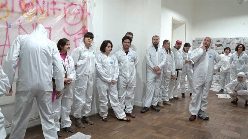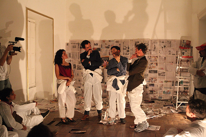 Eine Gruppe von Künstler*innen trifft sich in einem alten Haus im Zentrum der Stadt, um gemeinsam mit den Zuschauenden dort eine Reihe von Spielen und Ritualen zum Leben zu erwecken. Dies geschieht zwar in diesem Fall konkret in Santiago de Chile, es könnte aber auch jede andere Stadt dieser Welt sein. Die Schauspielenden springen zwischen Realität und Fiktion hin und her und führen die Zuschauenden in ihrem Spiel immer tiefer hinein in die Handlungsspirale. Einmal sind sie eine Gruppe von Arbeiter*innen, die Reparaturen am historischen Gebäude durchführen müssen und hierfür die Hilfe der Zuschauenden benötigen, mal sind sie einflussreiche Politiker*innen, die verfassungsmäßig über das Schicksal des Landes entscheiden und dann sind sie doch wieder nur Schauspieler*innen, die darüber diskutieren, wie man das Stück denn nun zu Ende bringen soll. Doch die Grenze zwischen Spiel und Realität ist schmal und undurchsichtig, es lauert Gefahr. Die Zuschauenden haben ihr Schicksal selbst in der Hand und feiern dabei gemeinsam mit den Schauspielenden eine bunte Party. LOS X lebt von der Interaktion mit dem Publikum und verläuft niemals gleich. Je nach aktuellem politischem Kontext ändern sich auch die Stückinhalte und dessen Verlauf.