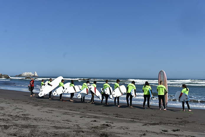 Bereits zum sechsten Mal fand das PASCH-Sommercamp im Jahr 2020 statt. Dieses Mal waren mit von der Partie zwölf Schüler*innen vom Instituto Nacional in Santiago, der Rudolf Deckwerth Schule in Puente Alto und dem Liceo Polivalente Bicentenario in San Nicolás sowie vier Kulturweitfreiwillige, die an Schulen in Chile und Argentinien im Deutschunterricht assitieren. Die perfekten Wellen und die grosse Motivation der Teilnehmer*innen ermöglichten es allen, grosse Lernfortschritte im Surfen zu machen. Dank des Engagements der freiwilligen Helfer*innen wurde das Camp zudem von einem abwechslungsreichen Rahmenprogramm begleitet, in dem die Schüler*innen ihre Deutschkenntnisse anwenden und vertiefen konnten. Das Zusammenleben zwischen chilenischen Schüler*innen, deutschen Surflehrer*innen und freiwilligen Betreuer*innen auf dem Campingplatz war sehr harmonisch und von einem interkulturellen Austausch geprägt. Zu den Highlights der Woche zählten –neben dem täglichen Surfen- ein Ausflug in die Surfhauptstadt Pichilemu, eine Wanderung nach Pupuya mit anschliessendem Müllsammeln am Strand, Werwolf-Spielen am Lagerfeuer, die Produktion eines Stopmotion-Videos sowie eine Schnitzeljagd auf dem Campingplatz.