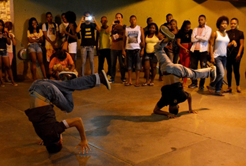 El flashmob, que dio origen a la obra Nostress’Arte, reunió a un total de treinta jóvenes y cuatro grupos de street dance –Cw crew, Perfeito Amor, Passos y Styllo Black Crew– del Suburbio Ferroviario, región periférica de Salvador donde viven cerca de quinientas mil personas distribuidas en veintidós barrios.